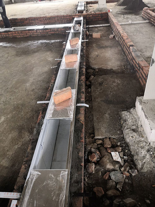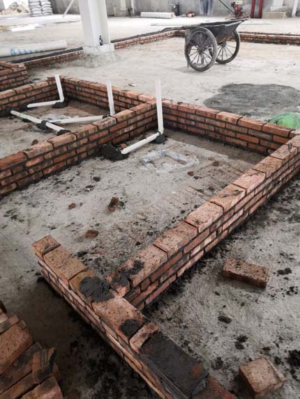 1.檢查井砌磚抹灰完成 2.擋水墻貼瓷磚 3.墻板鋁材到場 4.地面養(yǎng)護 5.擋水墻做防水