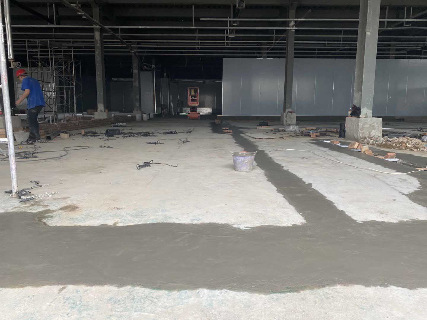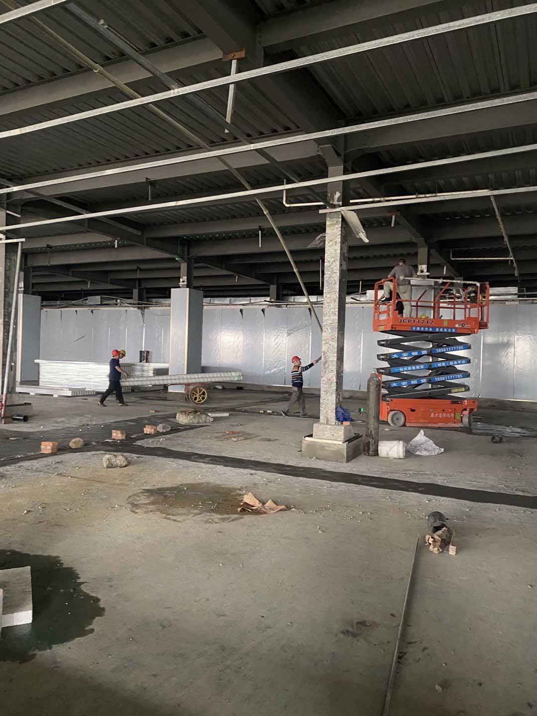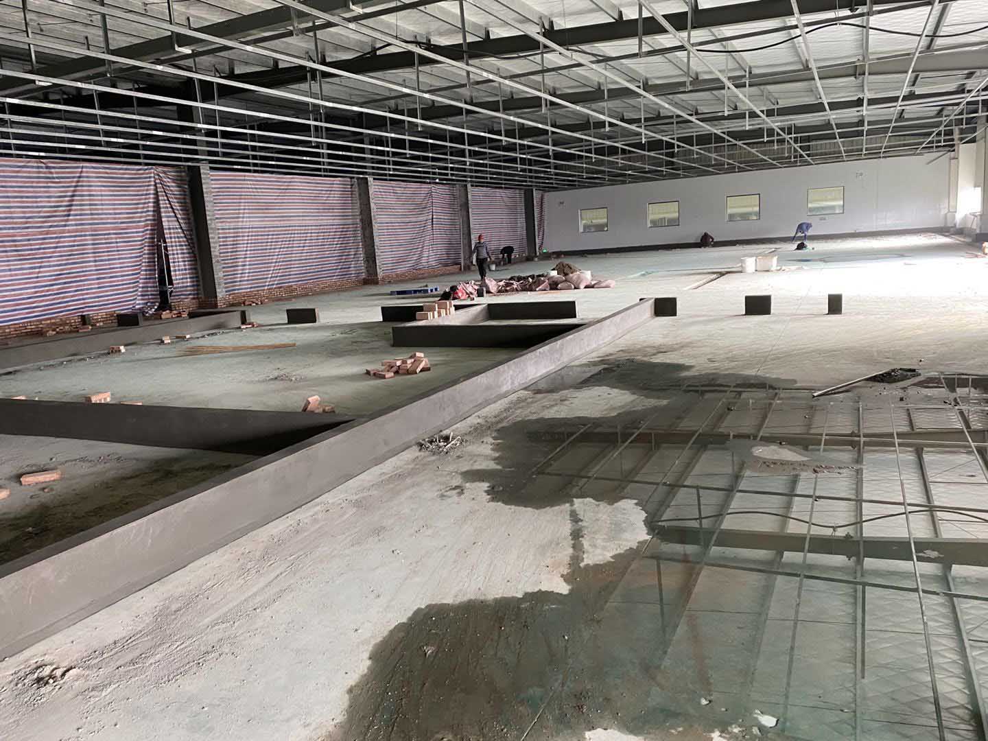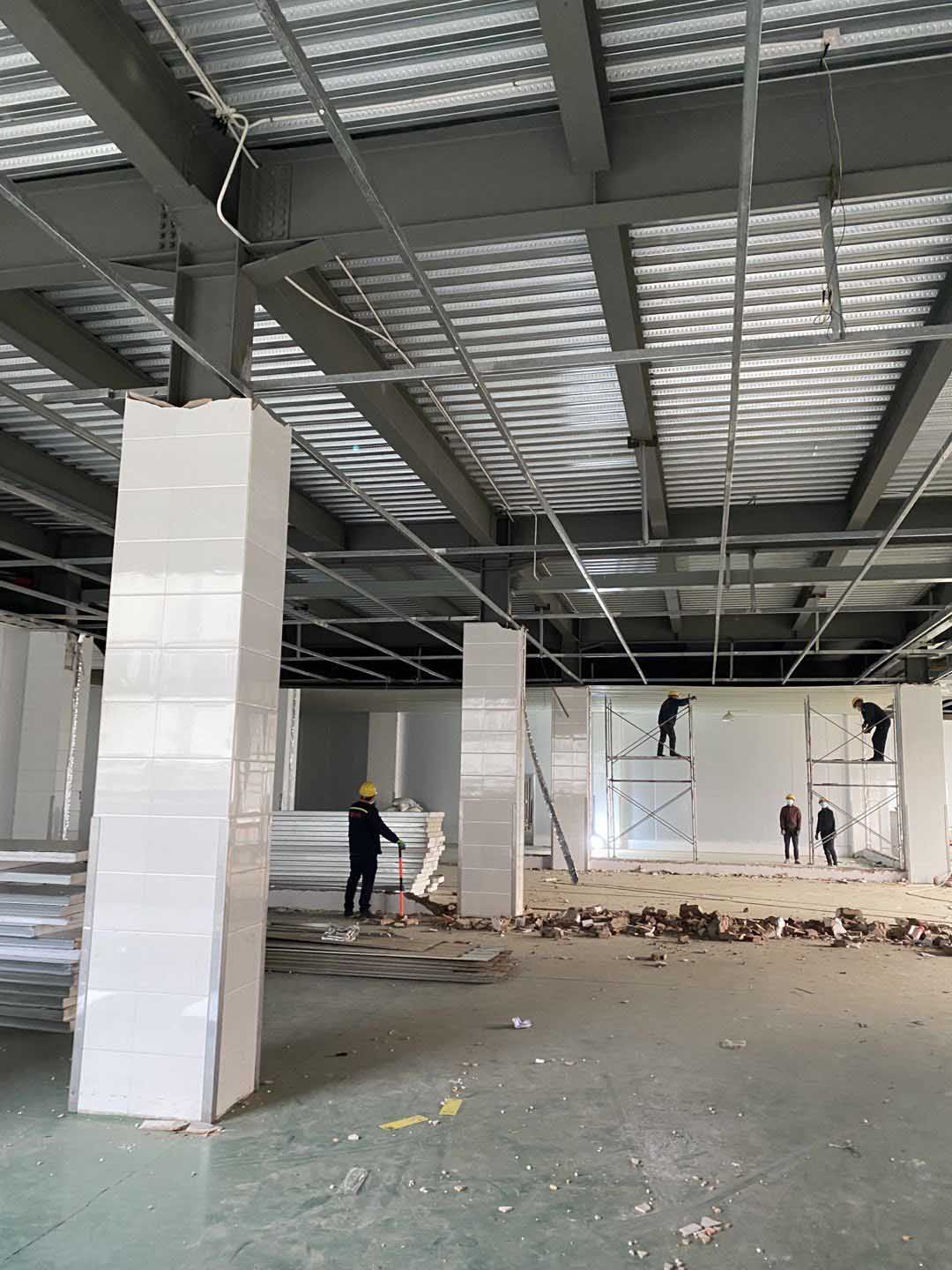 1、三車間環(huán)氧地坪超耐磨面層施工完成、二車間增加環(huán)氧地坪工程量打磨和底涂施工; 2、增項彩鋼隔墻板施工、門安裝; 3、風(fēng)機(jī)電源接駁、排氣扇波紋管更換安裝; 4、土建擋水墻、門洞貼磚勾縫