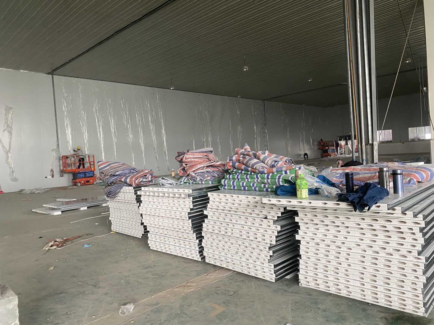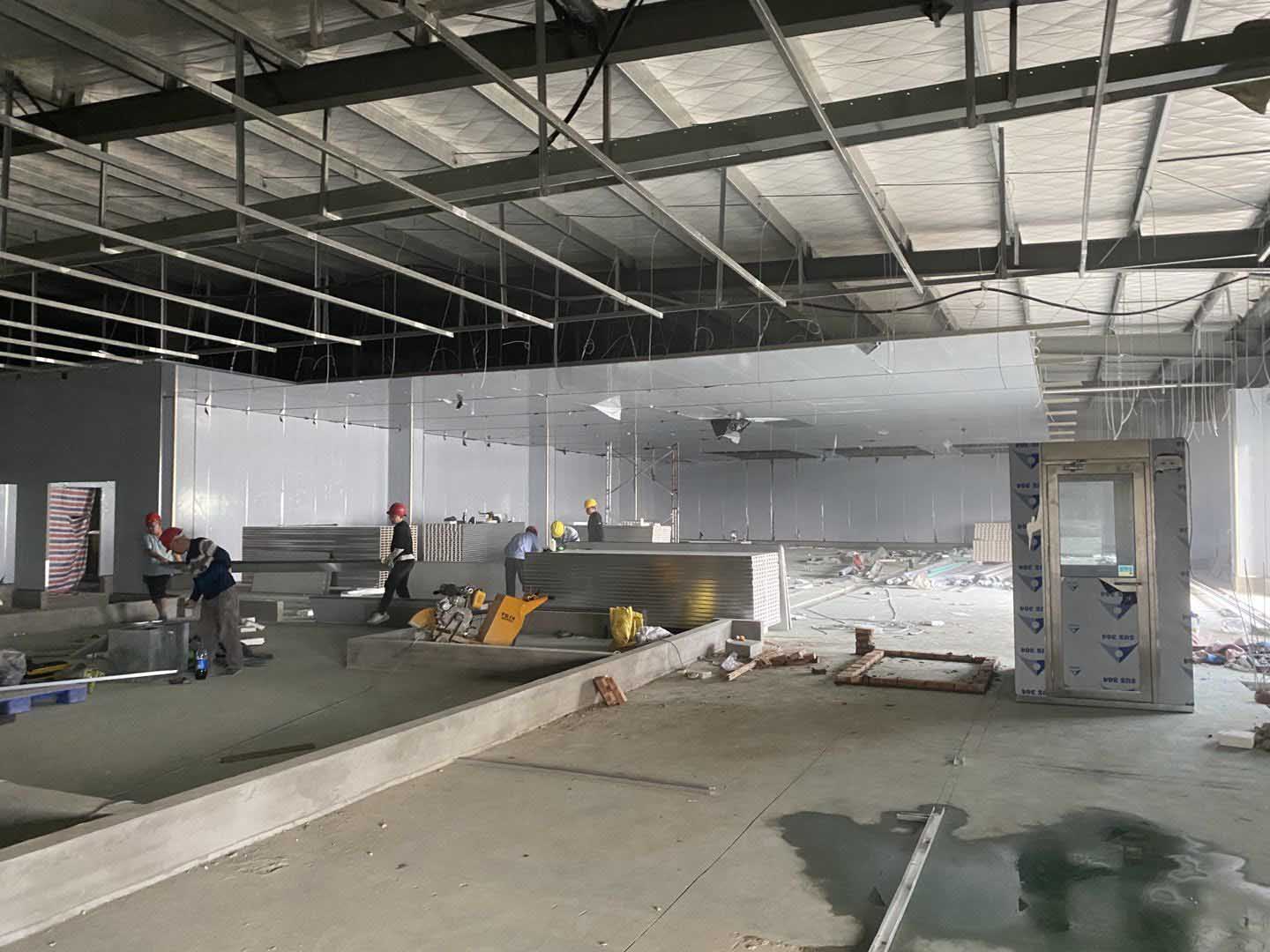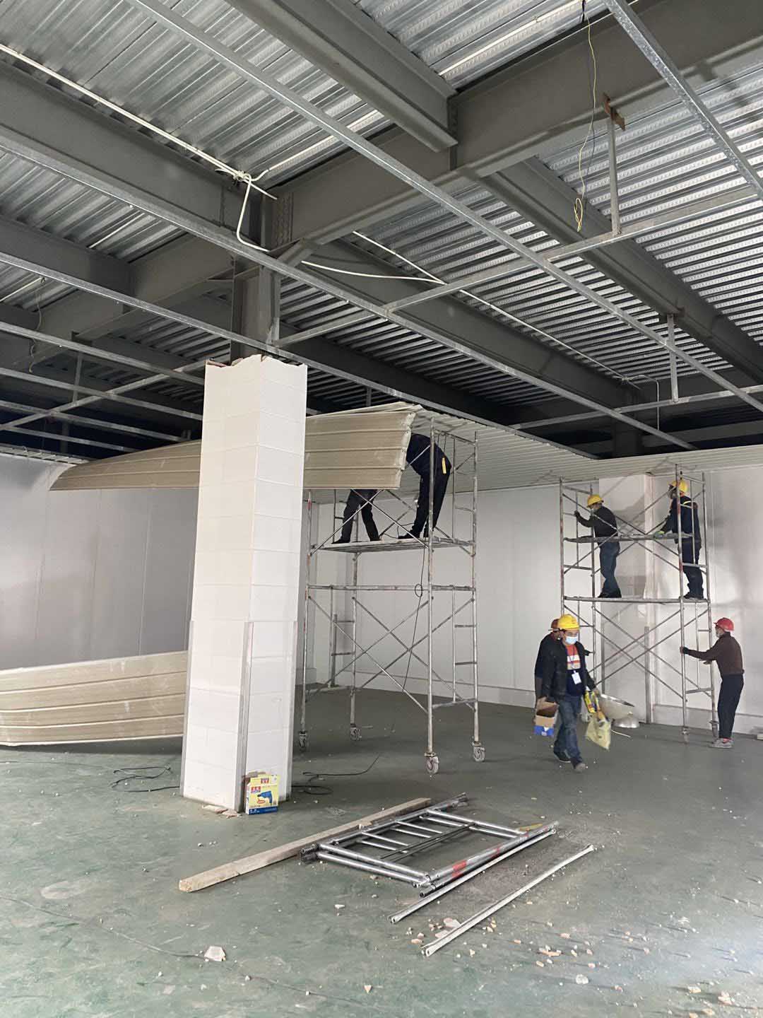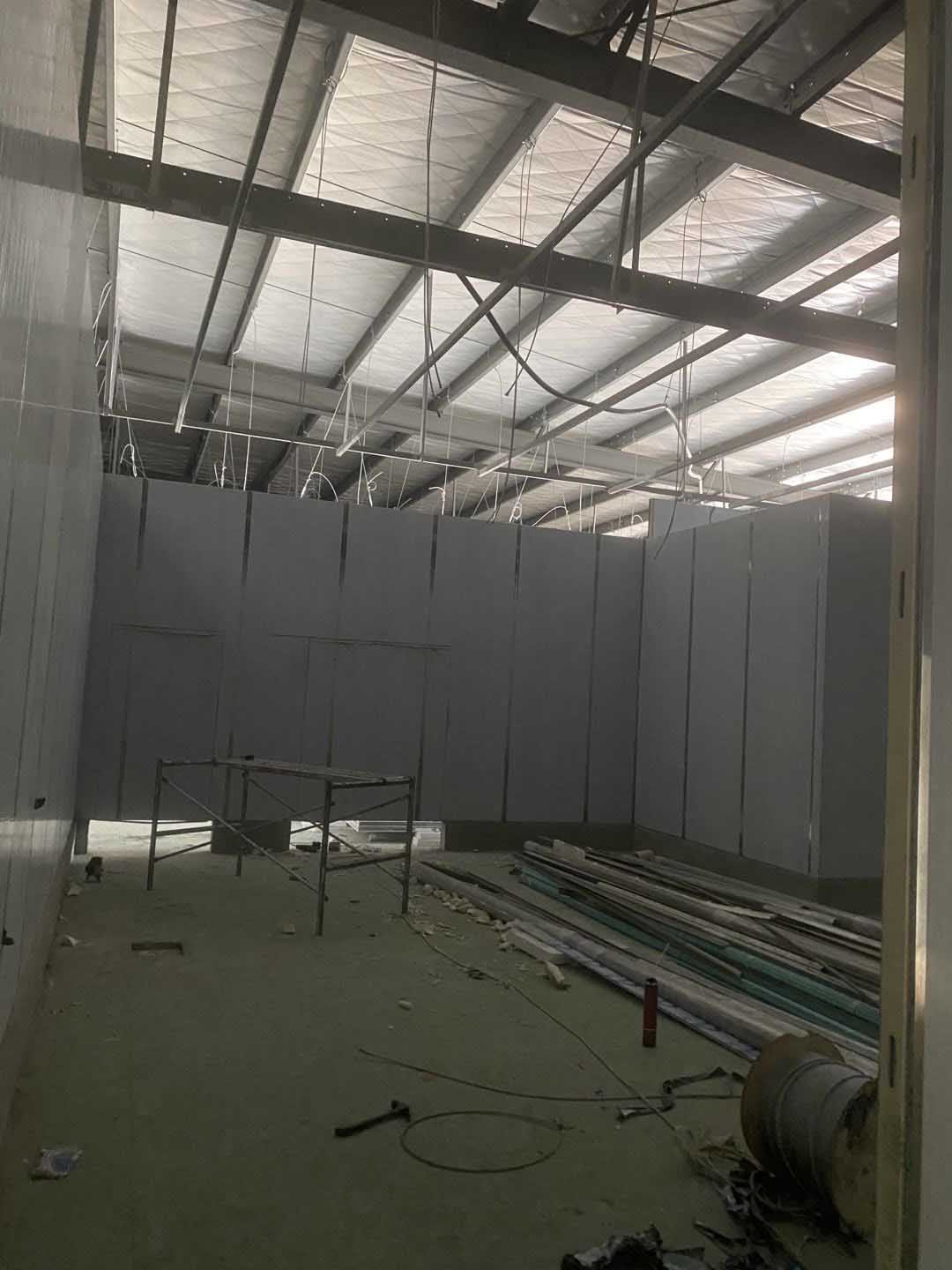 1、三車間環(huán)氧地坪超耐磨面層施工完成、二車間增加環(huán)氧地坪工程量打磨和底涂施工; 2、增項彩鋼隔墻板施工、門安裝; 3、風(fēng)機(jī)電源接駁、排氣扇波紋管更換安裝; 4、土建擋水墻、門洞貼磚勾縫