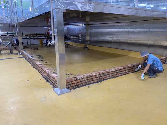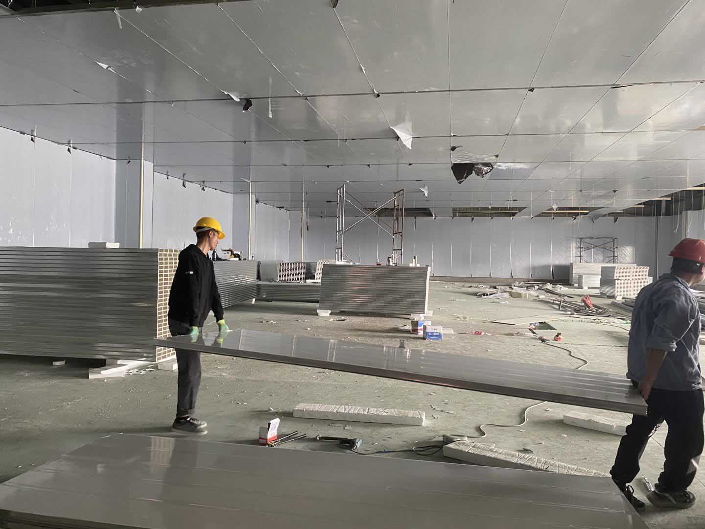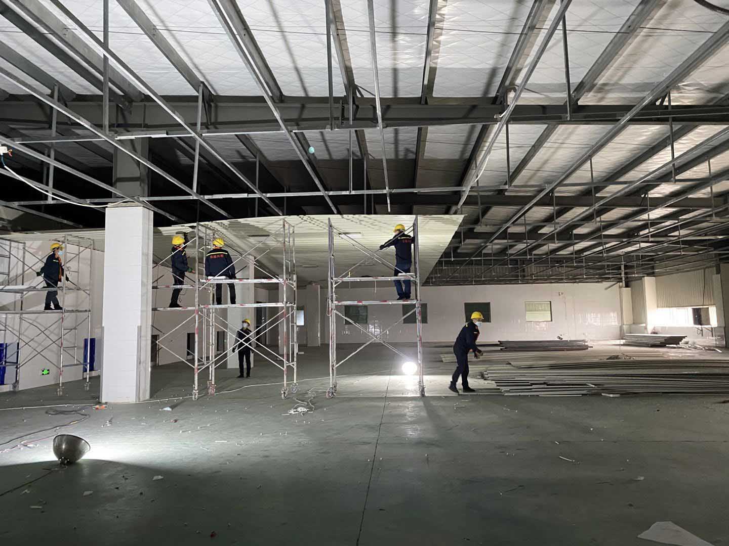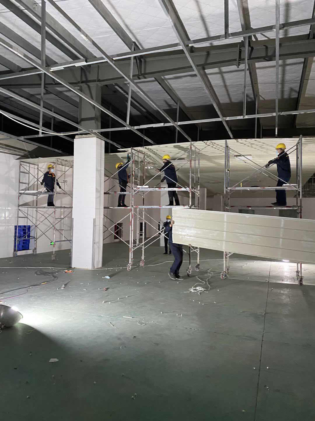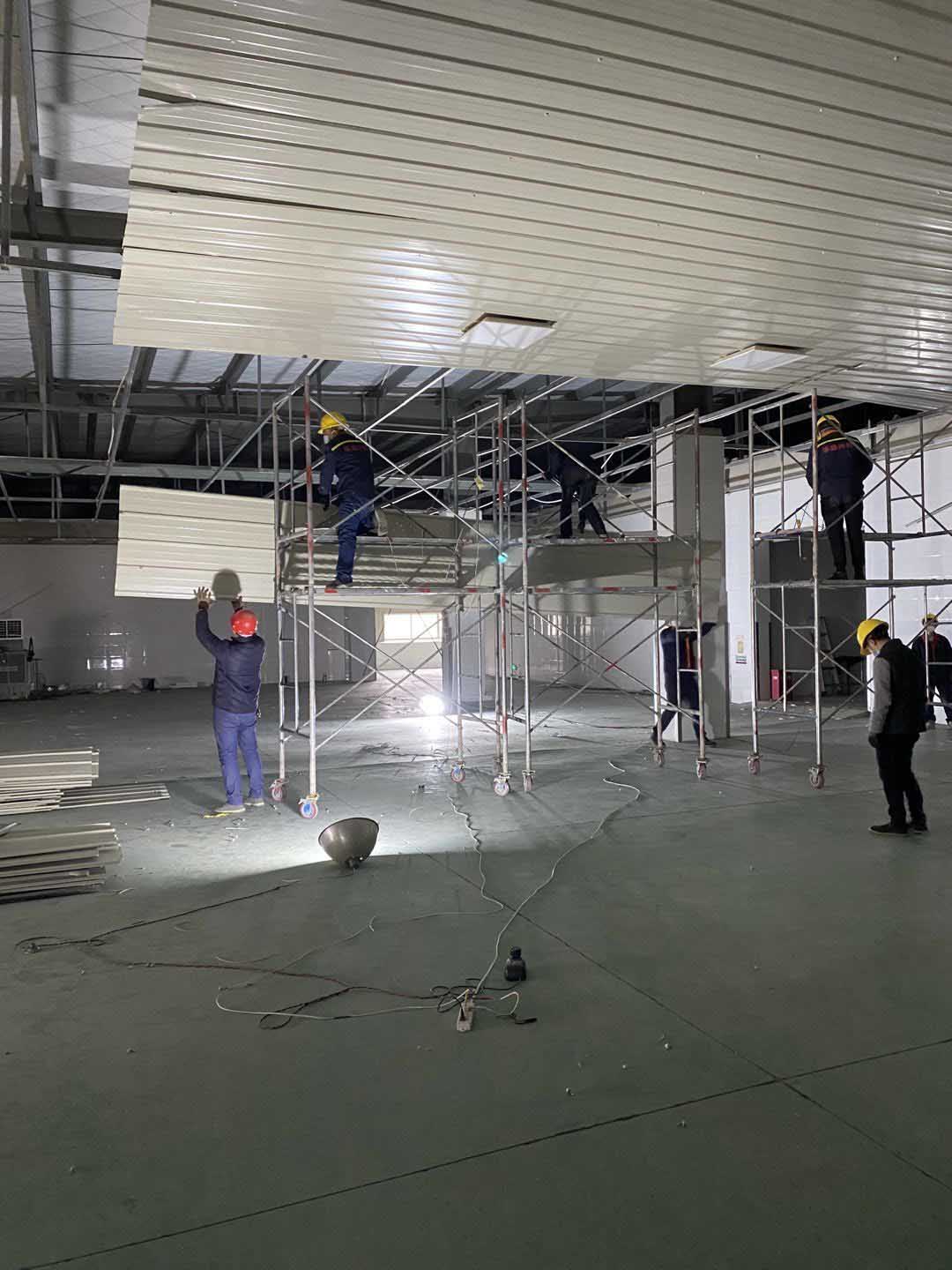 1、三車間環(huán)氧地坪超耐磨面層施工完成、二車間增加環(huán)氧地坪工程量打磨和底涂施工; 2、增項彩鋼隔墻板施工、門安裝; 3、風(fēng)機(jī)電源接駁、排氣扇波紋管更換安裝; 4、土建擋水墻、門洞貼磚勾縫