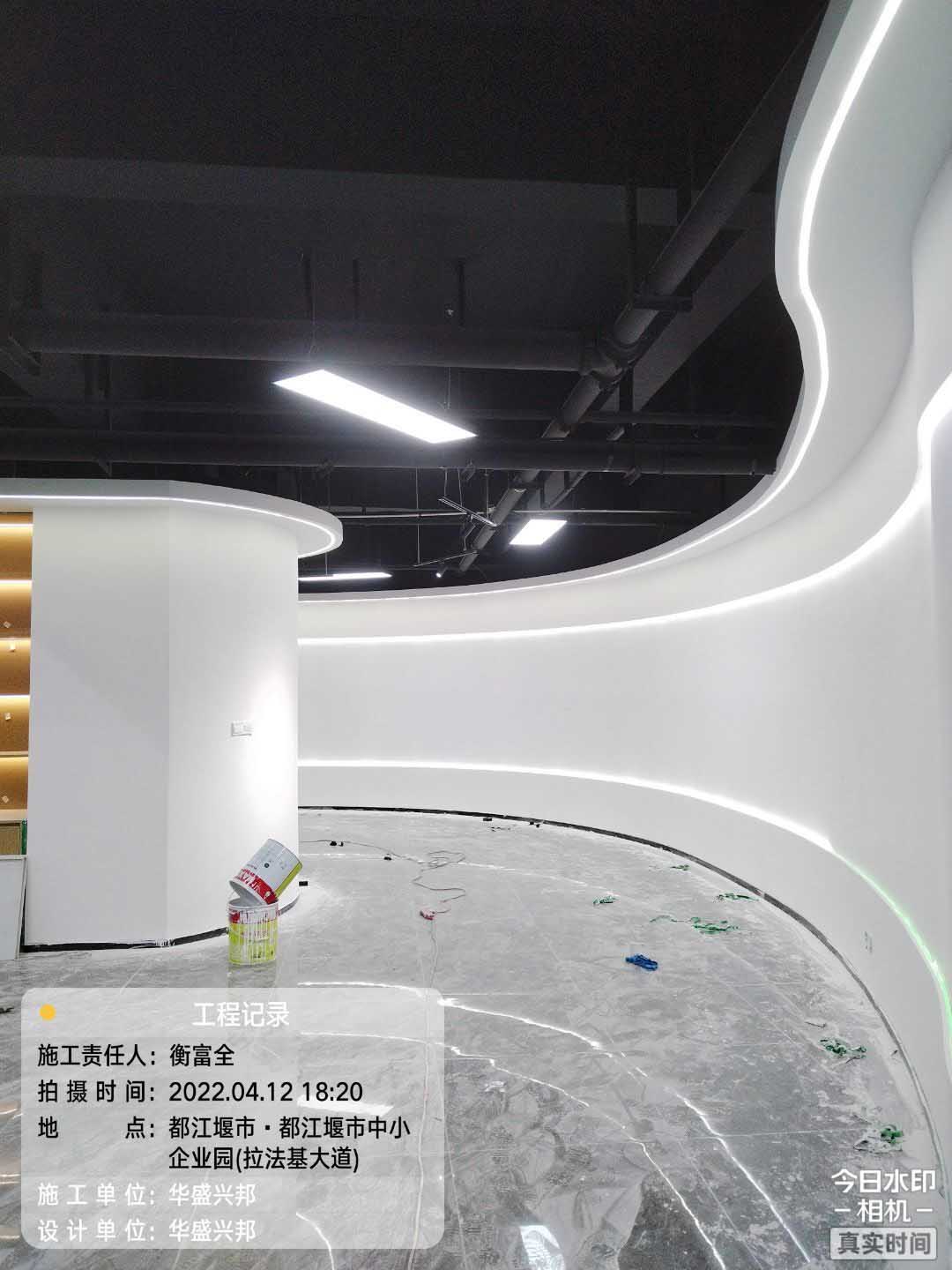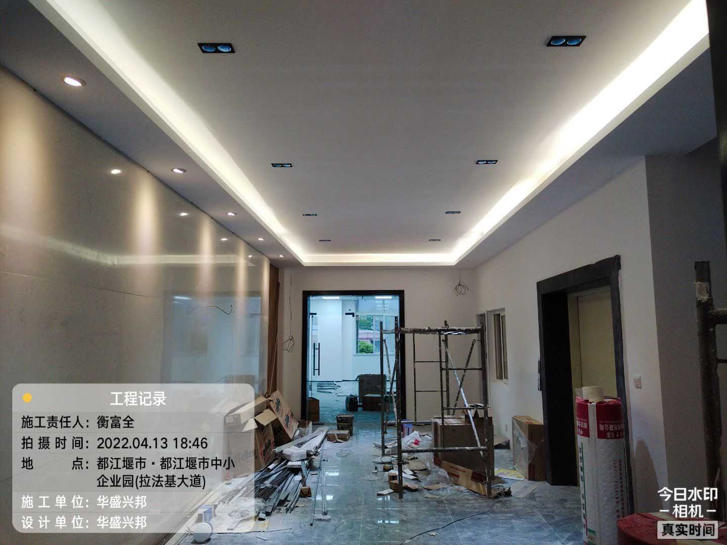 今日施工內(nèi)容 1,地磚勾縫 2,樓板吊頂施工 3,漆工收尾 4,燈具安裝 5,木門,鈦合金門安裝