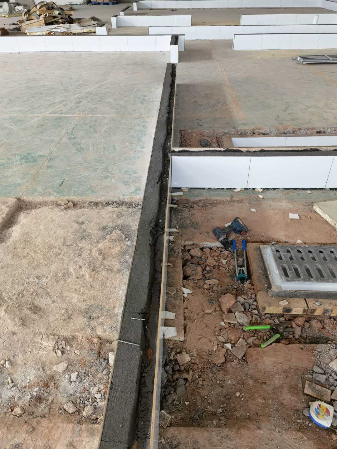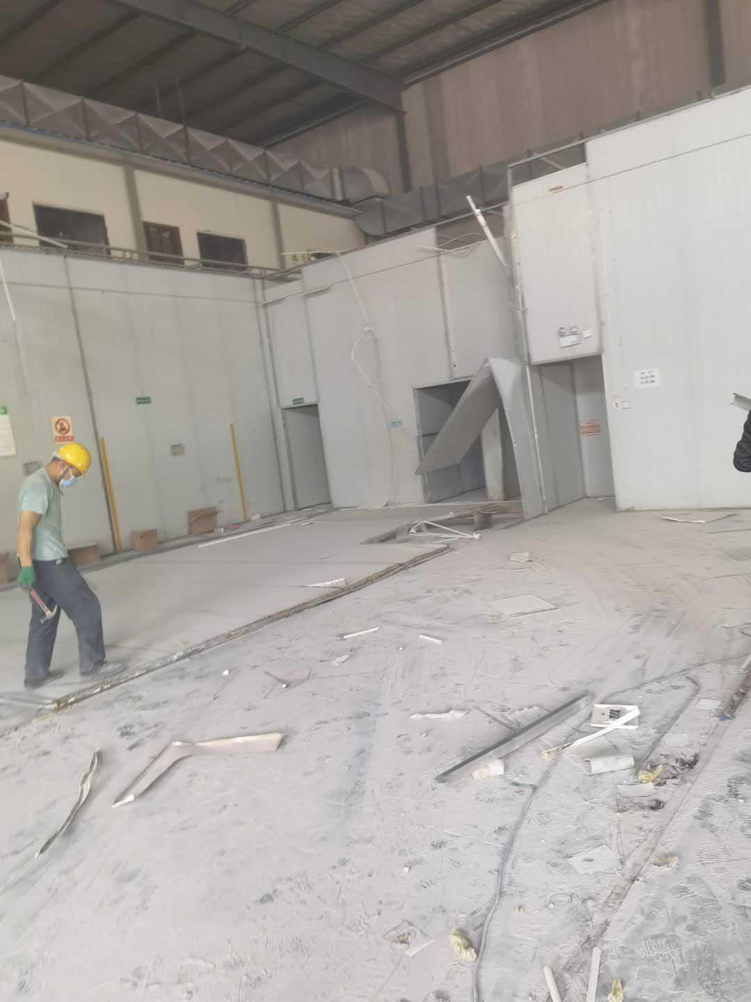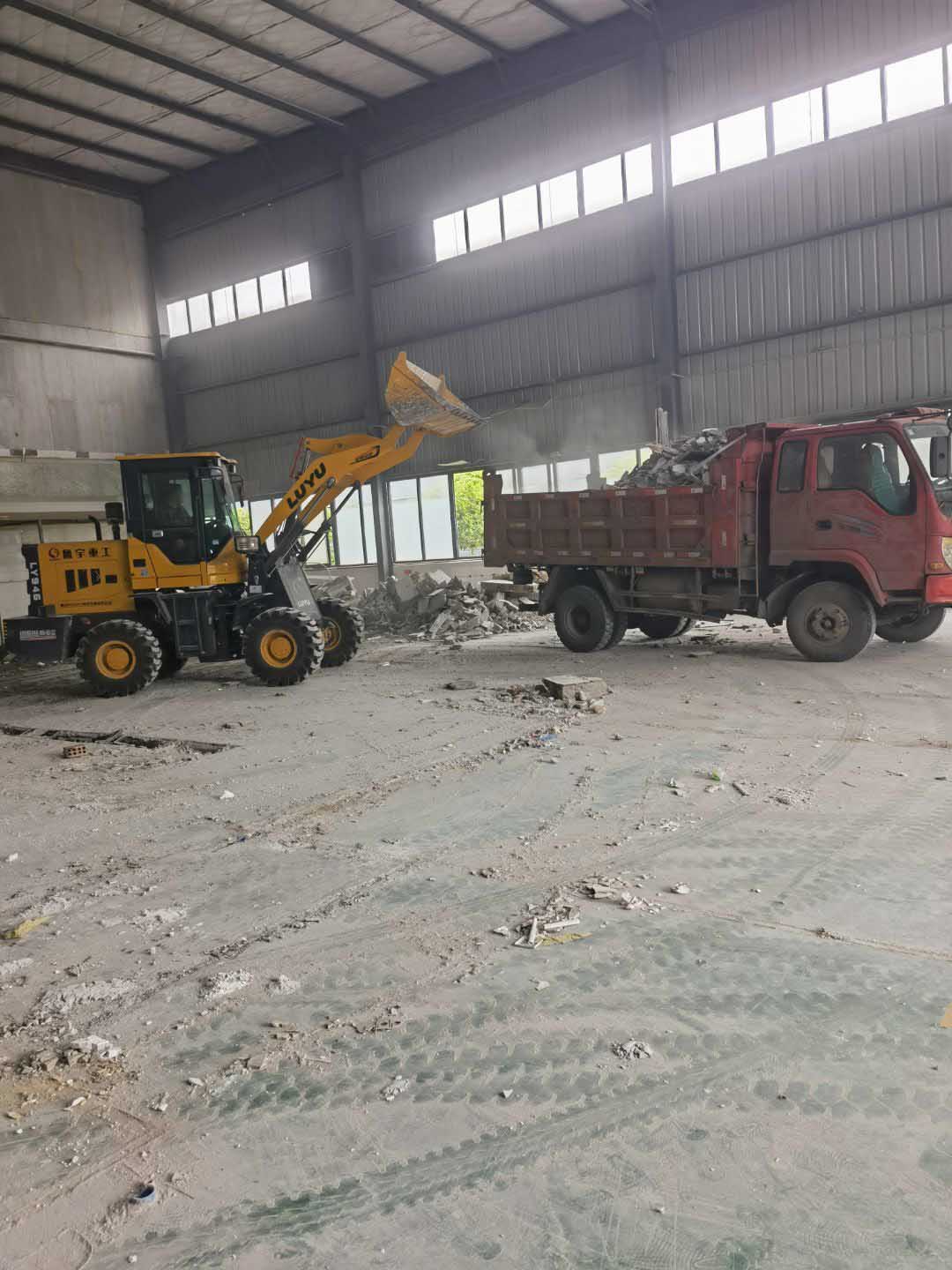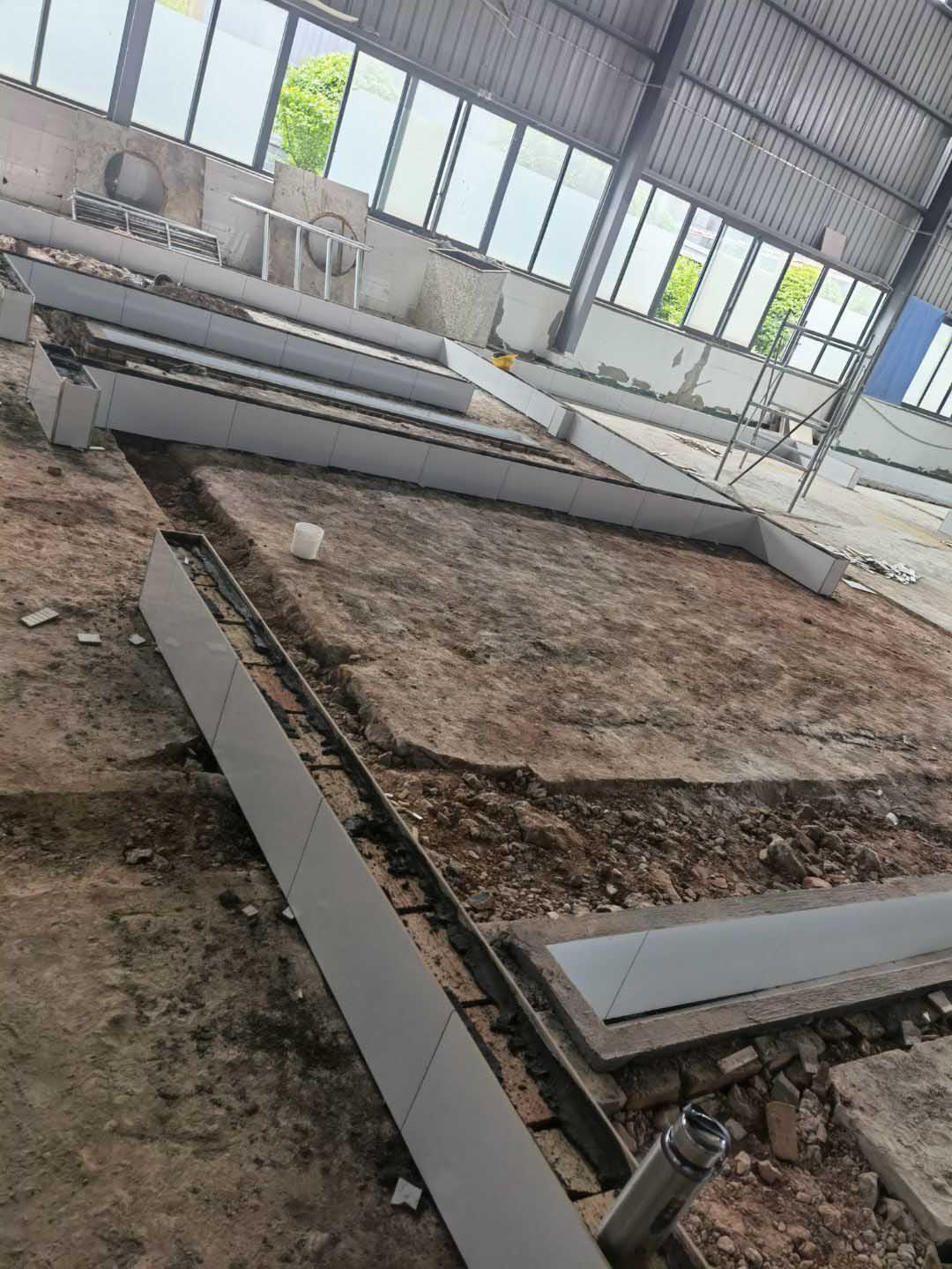 1.舊廠房拆除完成 2.建渣處理完成;3.放線切割