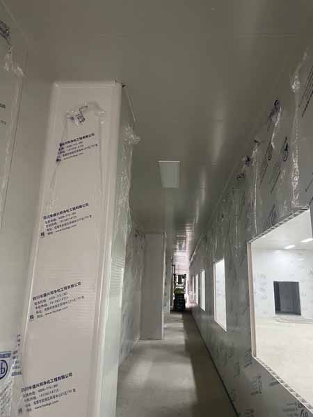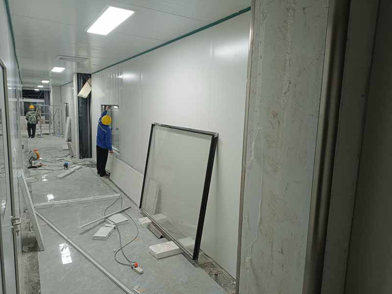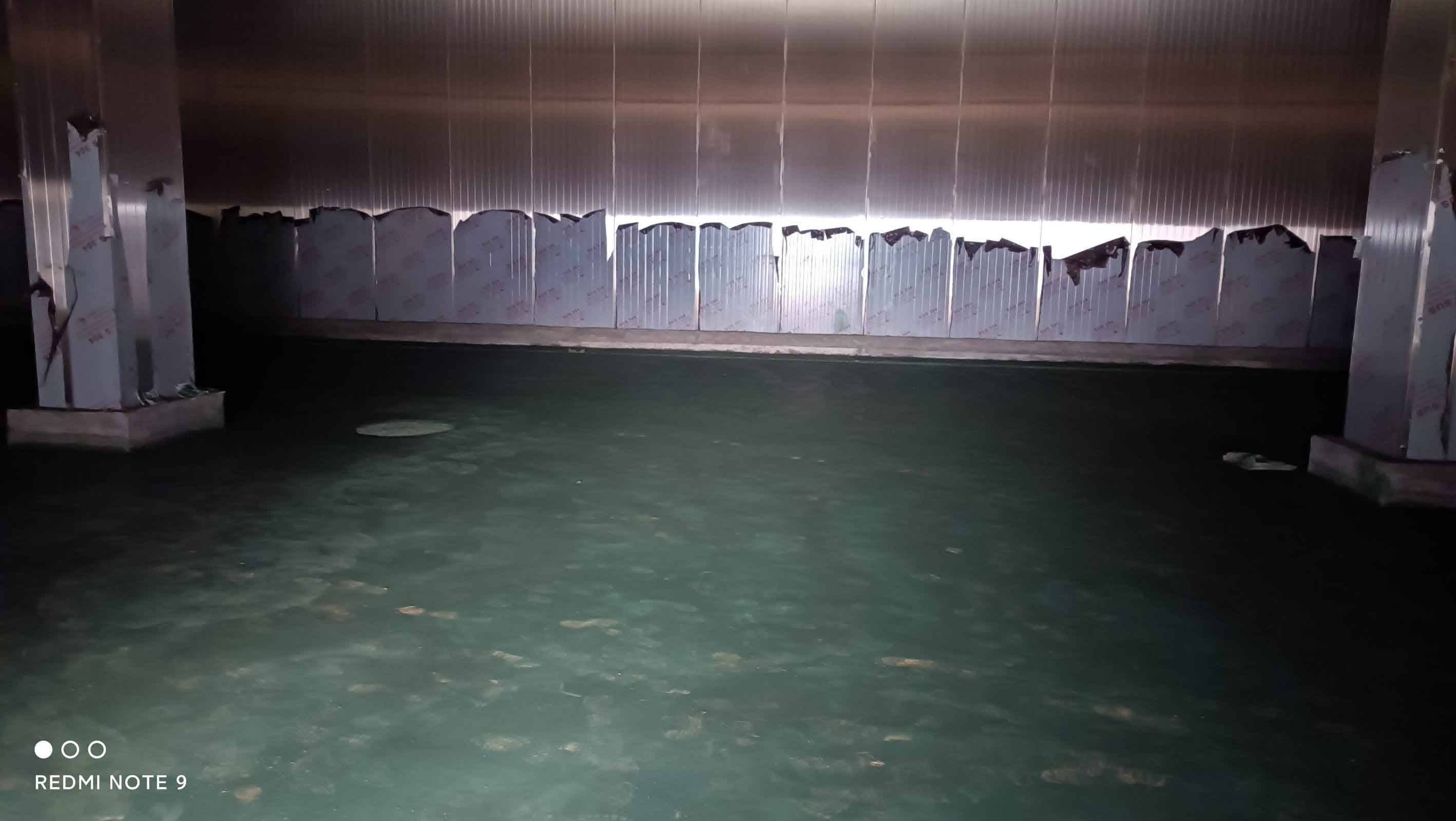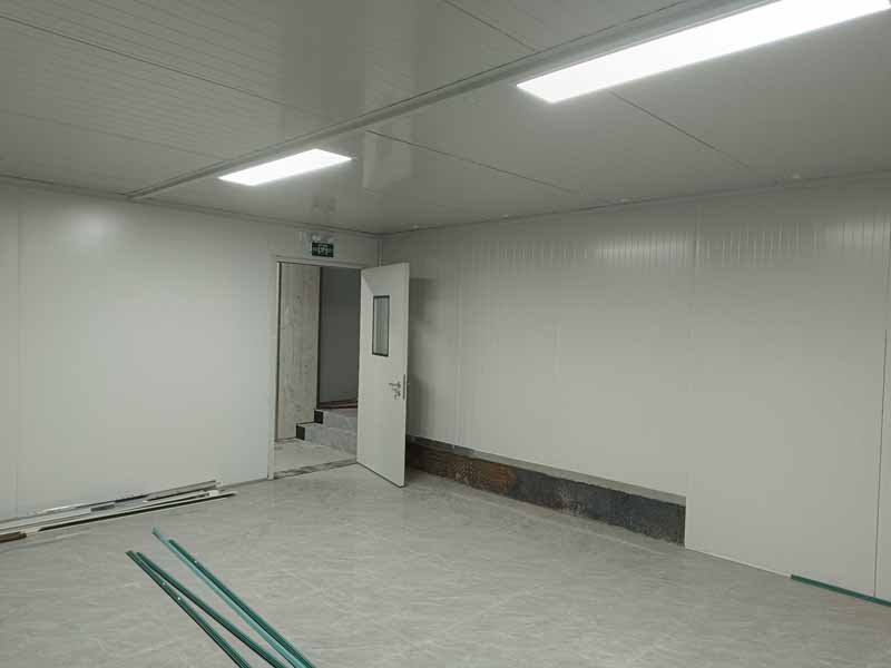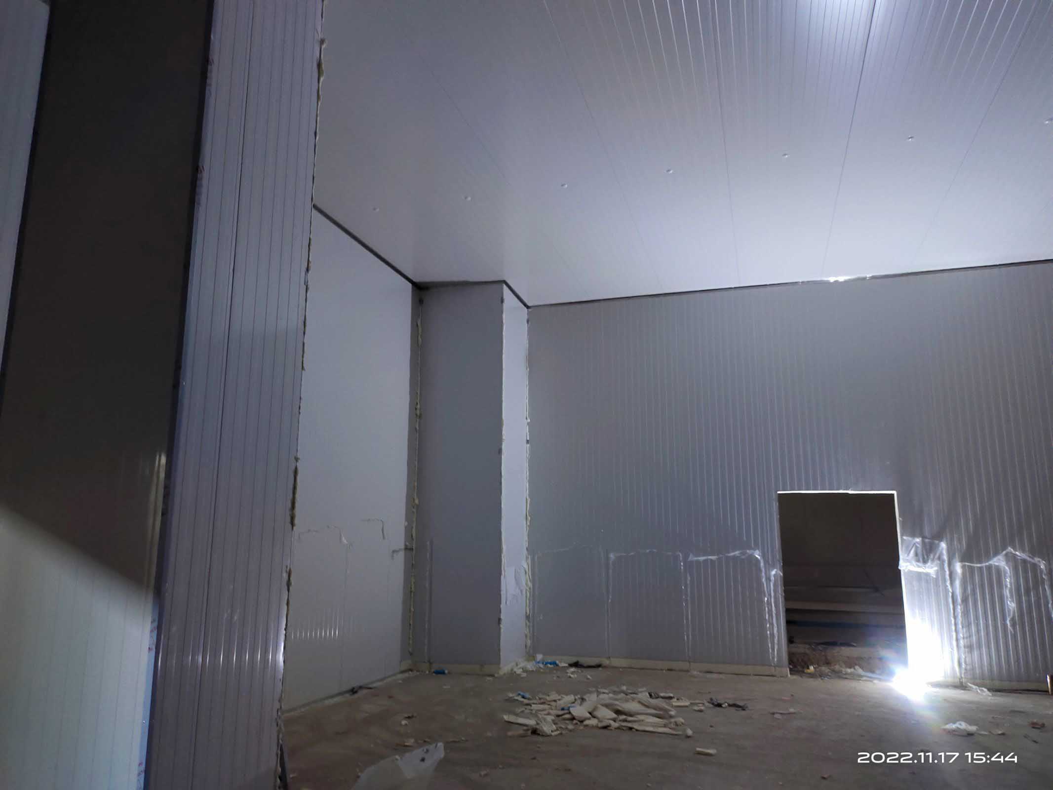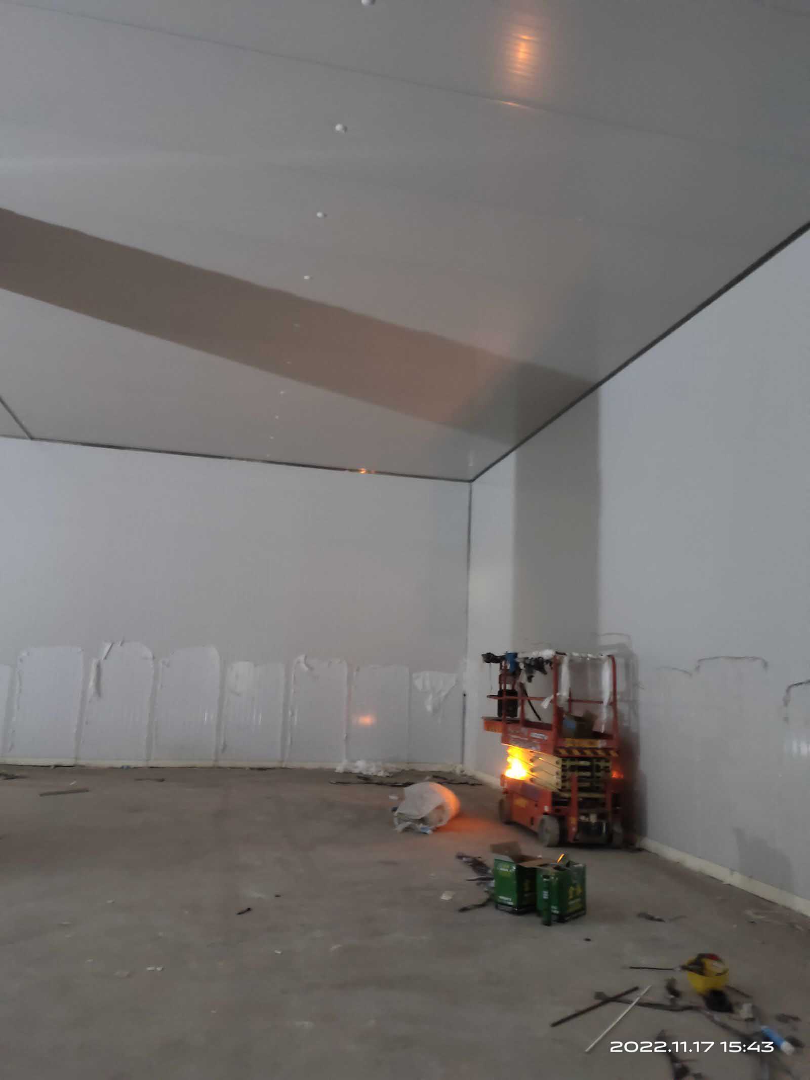1、凍庫控制電柜線路配線安裝98%,線路檢測。 2、凍庫設備管道清灰、自檢。 3、裝修收尾完成。 4、自由門邊擋水墻收尾完成 5、衛生打掃