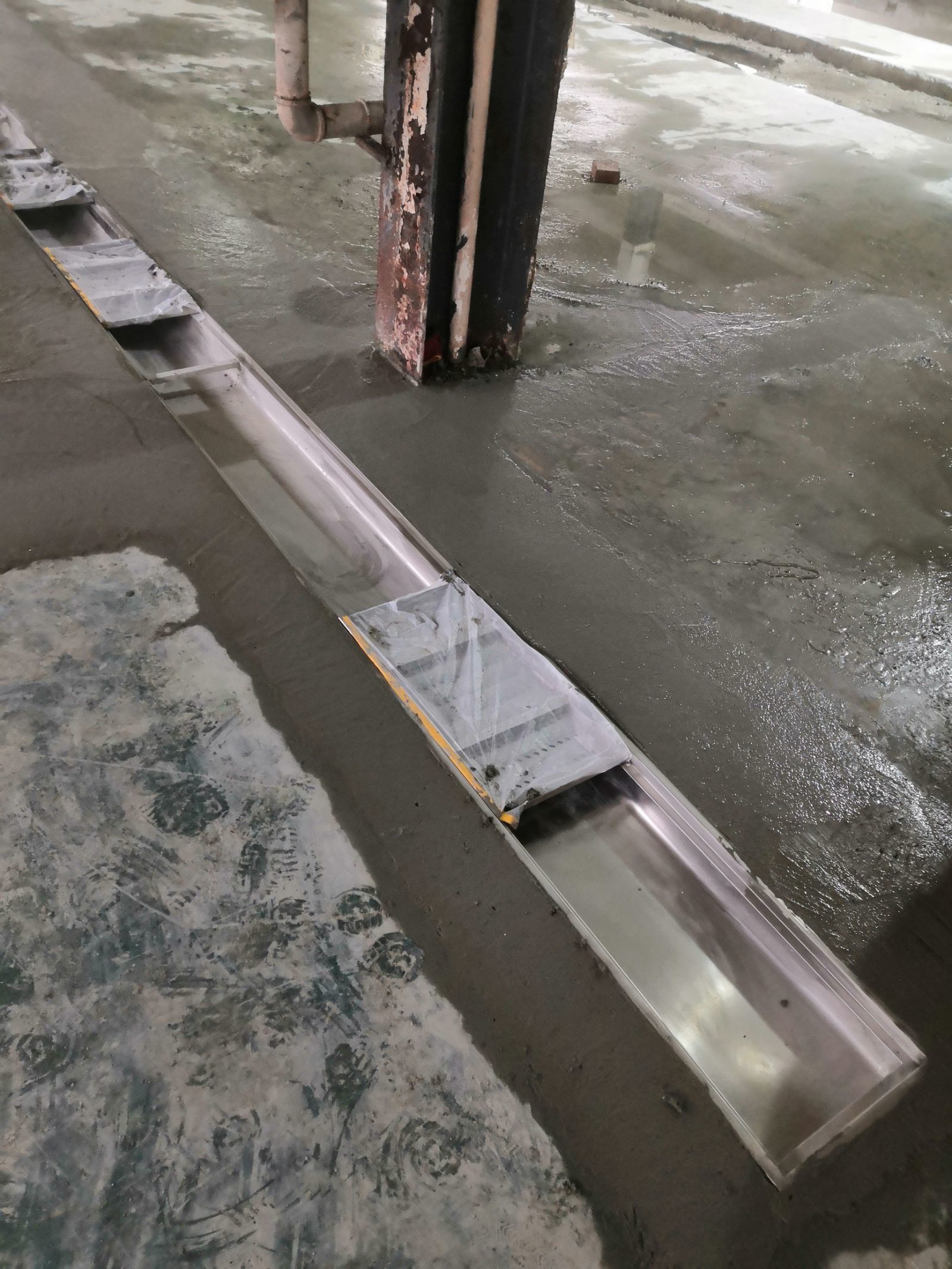 1、地面不銹鋼排水溝安裝,PE管熱熔對接。