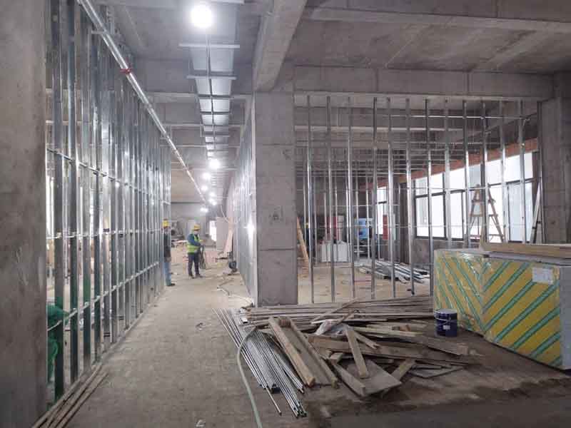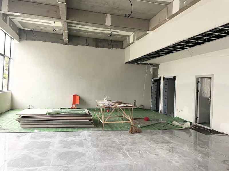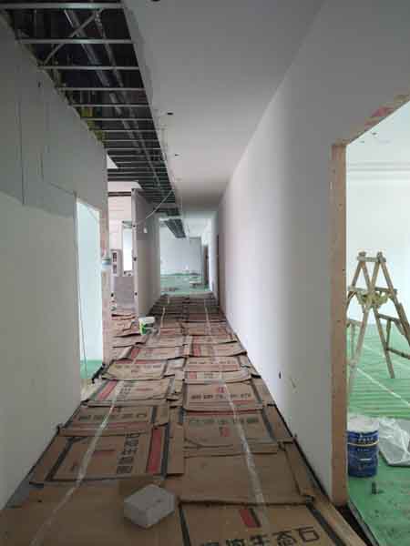 今日施工內容:1.隔墻龍骨吊頂龍骨架設 2.隔墻封板 3.電工照明線路鋪設