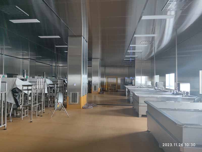 華盛興邦承接四川豐泰食品科技有限公司廠房設計裝修項目,一期一樓竹筍產品10000平米項目完工。二樓生產車間項目1000平開始施工。
