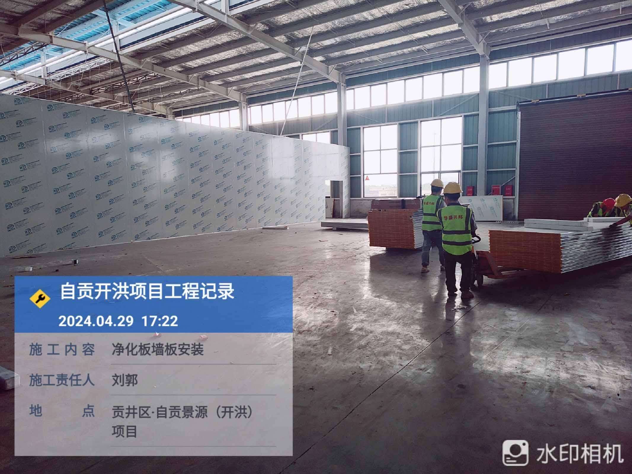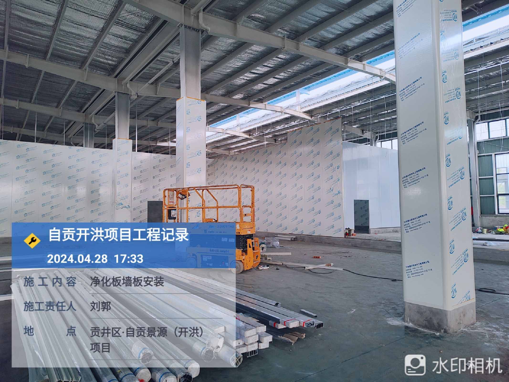 1、參觀走道鋼柱擋水墻砌筑抹灰完成80% 2、進化板吊頂安裝 3、凈化板墻板安裝 4、到場凈化板及鋁材卸貨