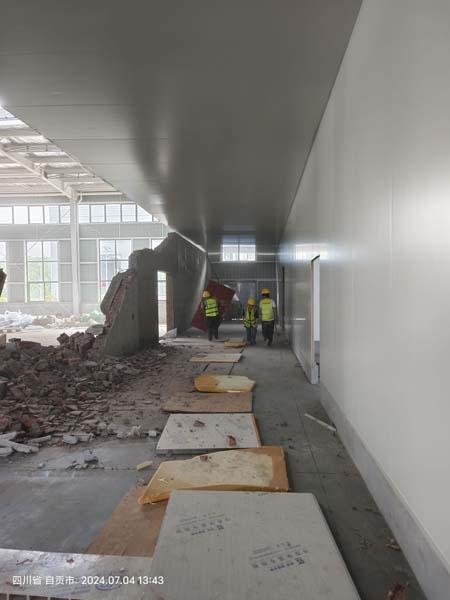 1、凍庫保溫板吊頂加固 2、聚氨酯擋水墻上墻 3、煮制間煙罩組裝 4、凍庫包柱 5、參觀通道通玻樣品下單 6、凍庫剪刀撐包柱施工